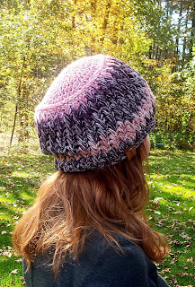 Here is my Beanie Version made with the basic crown option worked up in Lion Brand's Mandala Ombre in the "Felicity" colorway. I made this one with a sc band. It has a secure fit, but not too tight. The photo to the right shows an image of the basic crown option.